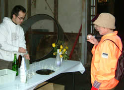 蔵見学の最後には純米酒と純米吟醸酒の試飲を行い、好評を得ていました。